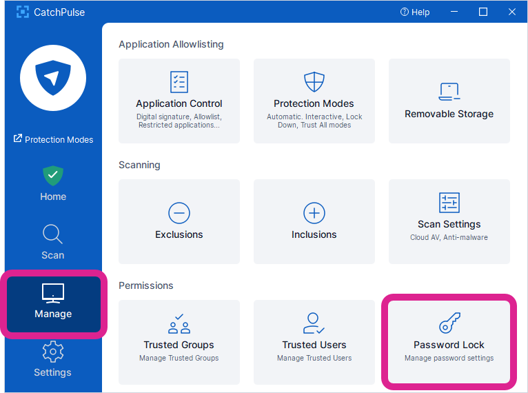 For increased security, users with a Standard or Pro license can exclusively lock their CatchPulse settings with a password. Once a password is set and the lock is toggled on, all the CatchPulse settings cannot be changed unless the correct password is entered to unlock it.