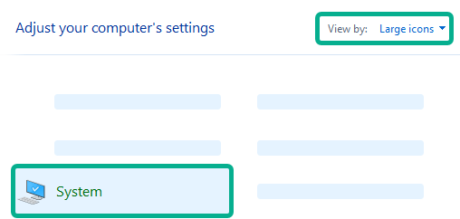 Go to Control Panel → View by: Large Icon → System.
