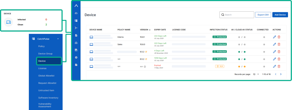If you cannot see your CatchPulse device on the Device Page of SecureAge Central, you need to add it to the account manually.