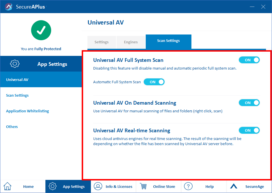Click on the App Settings → Universal AV on the left panel → Scan Settings tab and disable Universal AV.