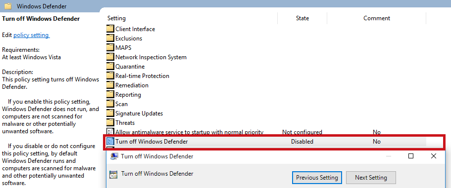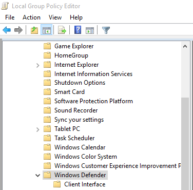 Computer Configuration/Administrative Templates/Windows Components/Windows Defender