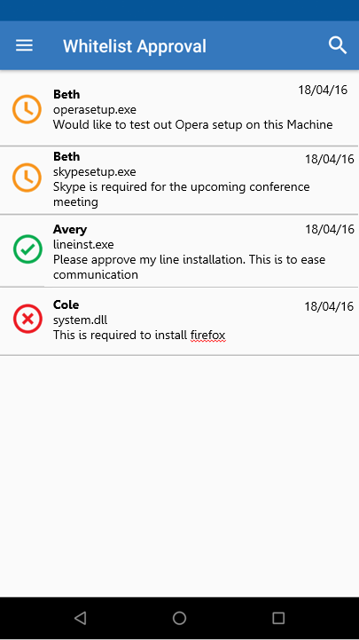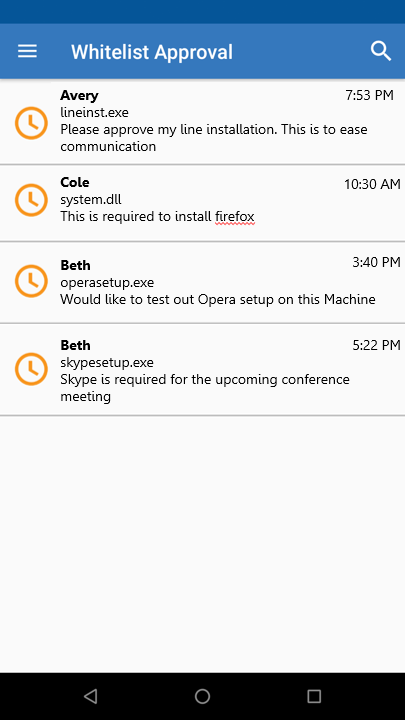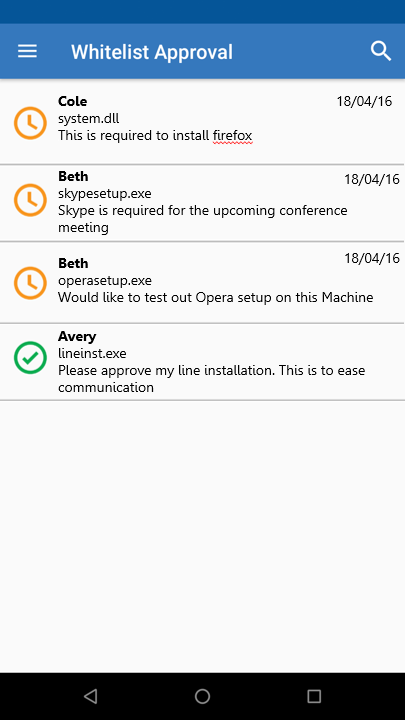The Request Whitelist Approval on SecureAPlus for Android is available on all desktop devices and will be visible on both the SecureAPlus Portal and the SecureAPlus for Android but only requests made by devices with SecureAPlus Pro licenses can be interacted (approve or deny) with.